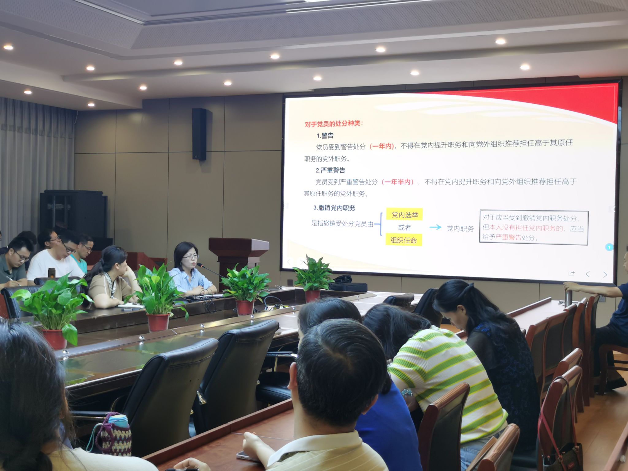 李慧敏以“共同学习《中国共产党纪律处分条例》”为主题,从《中国共产党纪律处分条例》的修订意义、总则和分则的重要内容三个方向出发,结合实例,阐述了纪律建设的重要性,激励党员干部增强纪律观念,提升自我约束力和党性修养。会议开始,李慧敏首先回顾了《中国共产党纪律处分条例》的修订历程,强调了党中央从严治党、全面从严治党的坚定决心。随后,详细解读了修订后的《条例》的总则部分,包括纪律处分的种类、原则、以及对党的纪律建设的新要求。在分则部分,李慧敏重点讲解了对党员违纪行为的具体处分规定,如对政治纪律、组织纪律、廉洁纪律、群众纪律、工作纪律和生活纪律等方面的规定,以及对违纪行为的认定标准和处分程序。同时,结合实际案例,分析了违纪行为产生的原因和危害,强调了党员干部要严守党的纪律底线,始终保持对党纪党规的敬畏之心,严格遵守党的纪律要求,做到言行一致、表里如一。