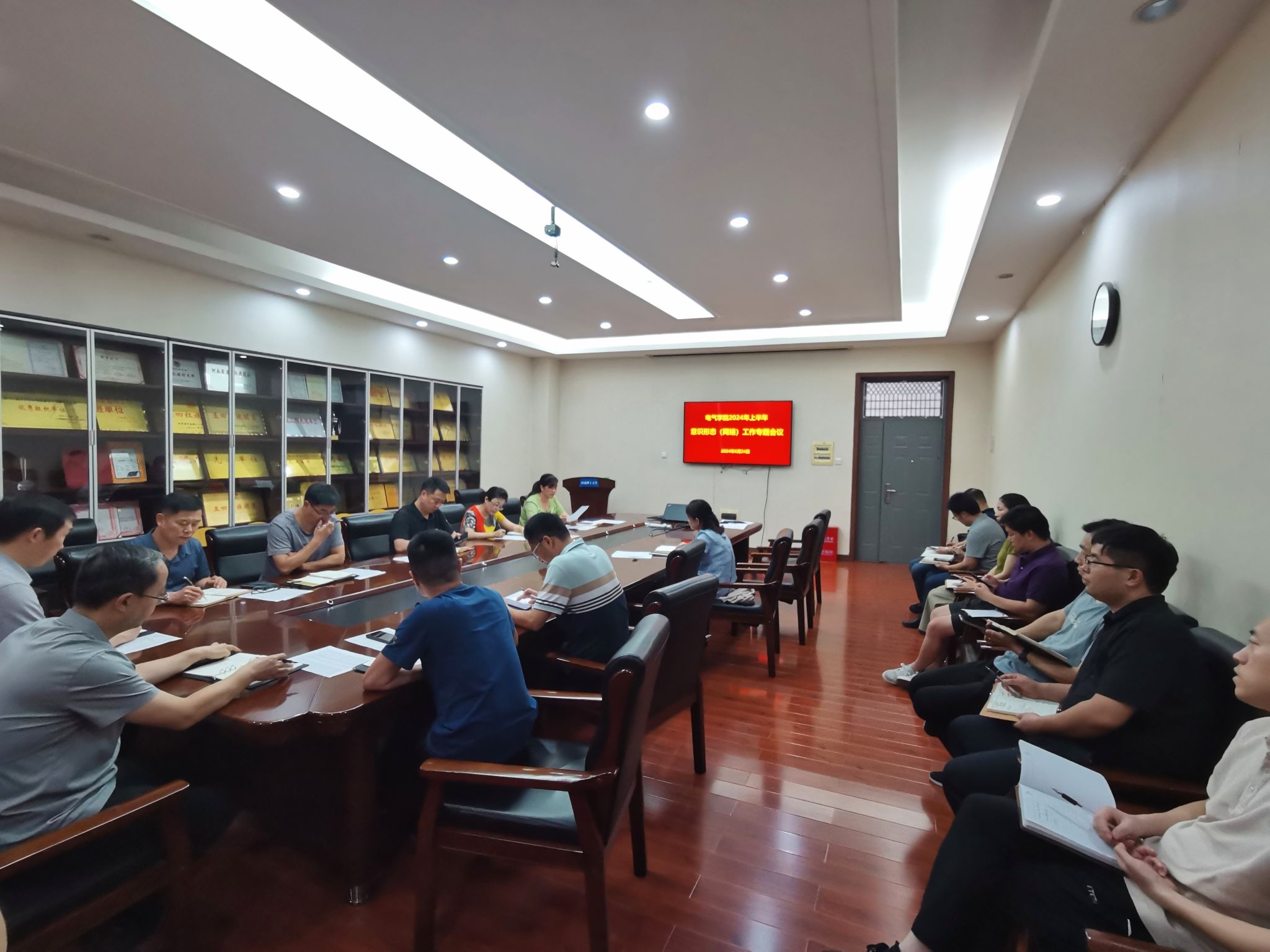 在215会议室召开2024年上半年意识形态(网络)工作会议,全体院领导以及各科室负责人、教工党支部书记参加会议。会议由学院党委书记李慧敏主持。