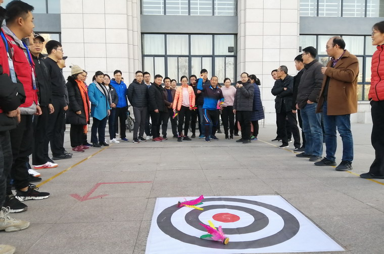 活动负责人宣布运动会正式开始,教职工们便以小组为单位来到不同活动地点,开始了激烈的比赛角逐。本次趣味运动会共设置“众星捧月”“心心相印”“搭桥过河”“仙人指路”“投靶掷准”五个比赛项目,趣味性十足,竞技性强。